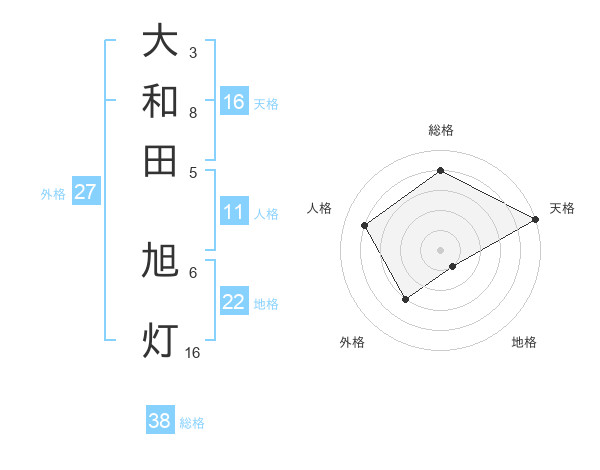 大和田 旭灯さんを姓名の画数から五運を鑑定