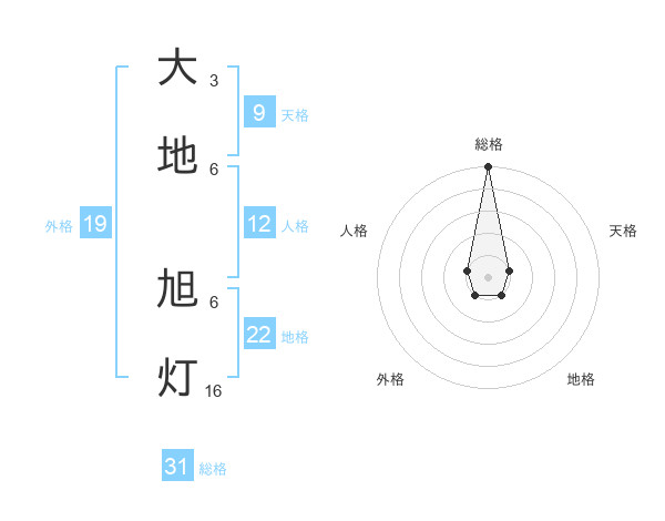大地 旭灯さんを姓名の画数から五運を鑑定