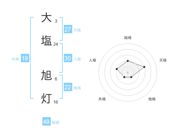大塩 旭灯さんを姓名の画数から五運を鑑定
