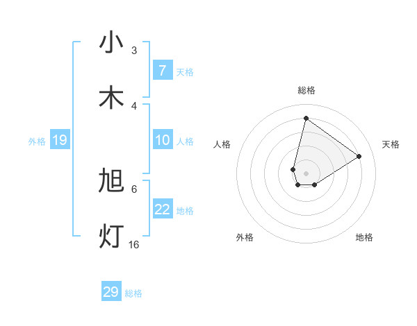 小木 旭灯さんの総格は29画の4点!