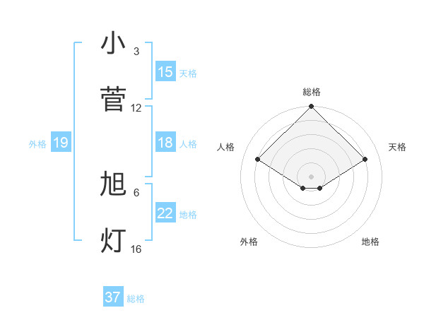 小菅 旭灯さんの総格は37画の5点!