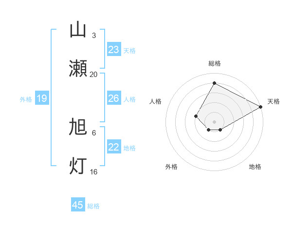 山瀬 旭灯さんを姓名の画数から五運を鑑定