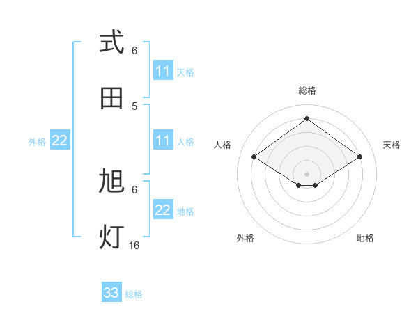 式田 旭灯さんの総格は33画の4点!
