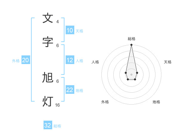文字 旭灯さんの総格は32画の5点!