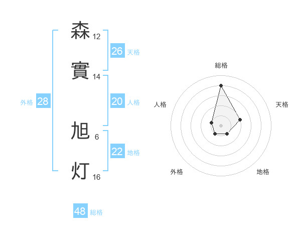 森實 旭灯さんの総格は48画の4点!