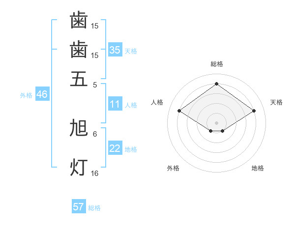 歯歯五 旭灯さんの総格は57画の4点!