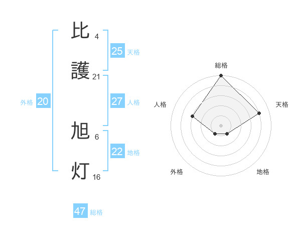 比護 旭灯さんを姓名の画数から五運を鑑定