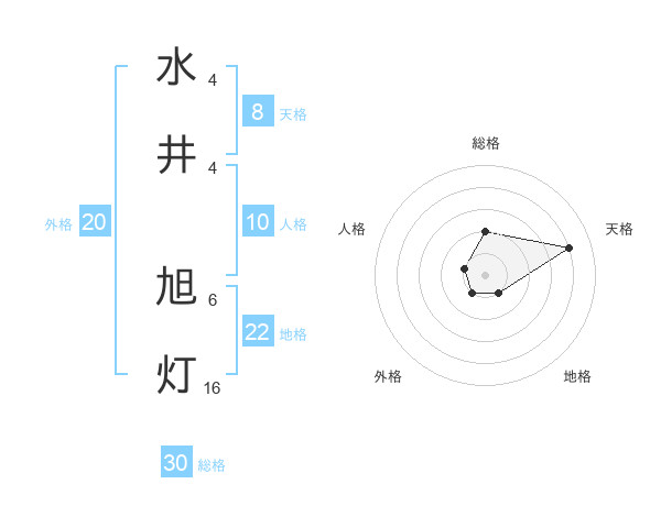 水井 旭灯さんを姓名の画数から五運を鑑定