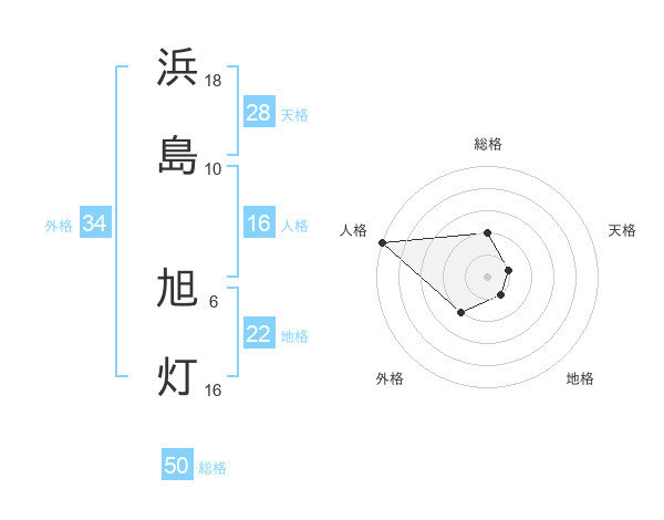 浜島 旭灯さんを姓名の画数から五運を鑑定