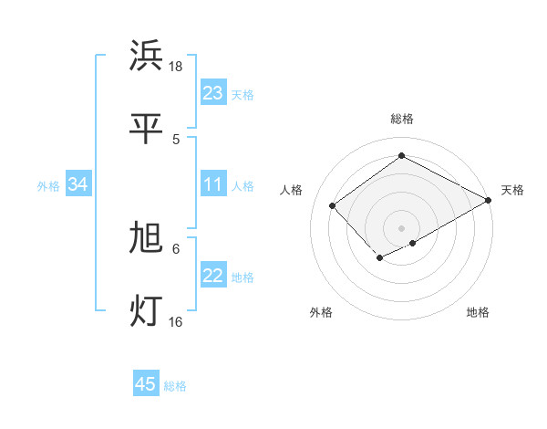 浜平 旭灯さんを姓名の画数から五運を鑑定