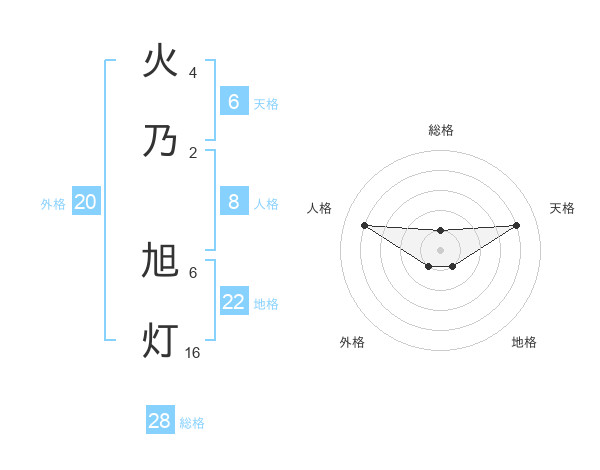 火乃 旭灯さんを姓名の画数から五運を鑑定