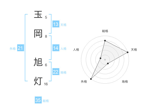 玉岡 旭灯さんの天格は13画の5点!