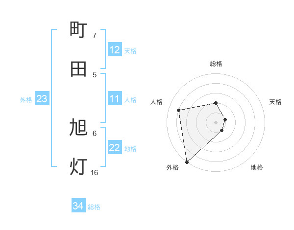 町田 旭灯さんを姓名の画数から五運を鑑定