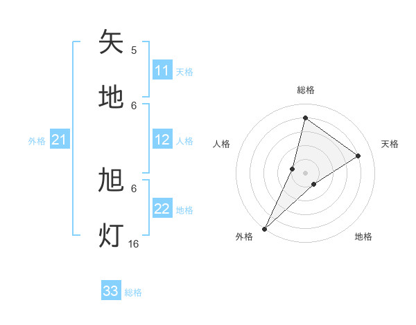 矢地 旭灯さんの総格は33画の4点!