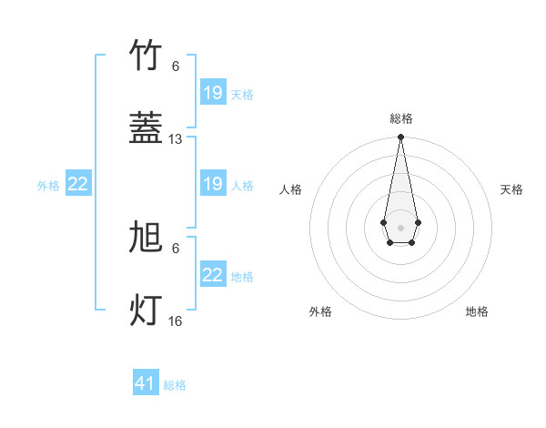竹蓋 旭灯さんの総格は41画の5点!