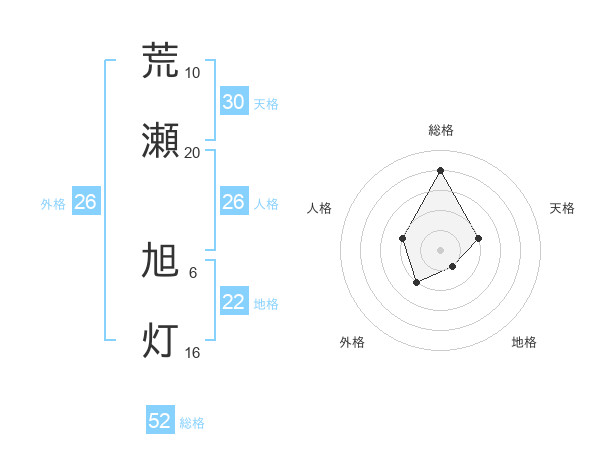 荒瀬 旭灯さんの総格は52画の4点!