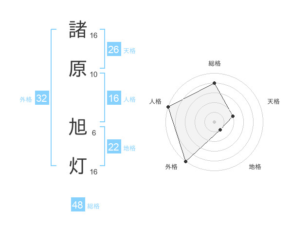 諸原 旭灯さんの総格は48画の4点!