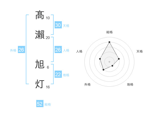 髙瀨 旭灯さんの総格は52画の4点!
