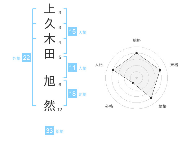 上久木田 旭然さんを姓名の画数から五運を鑑定