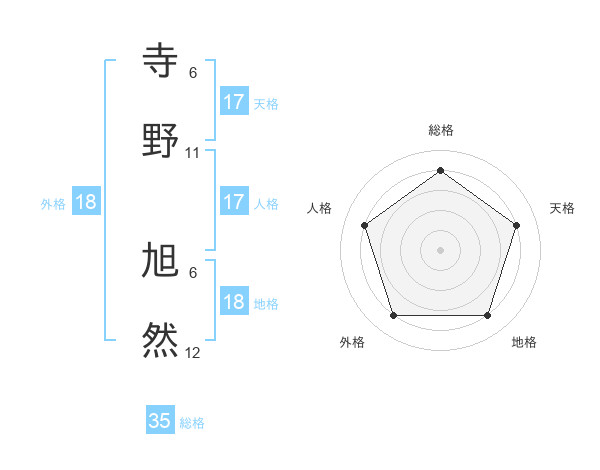 寺野 旭然さんの総格は35画の4点!
