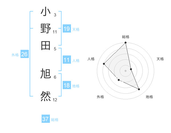 小野田 旭然さんを姓名の画数から五運を鑑定