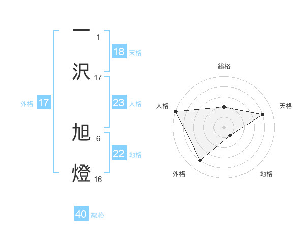 一沢 旭燈さんの総格は40画の2点!