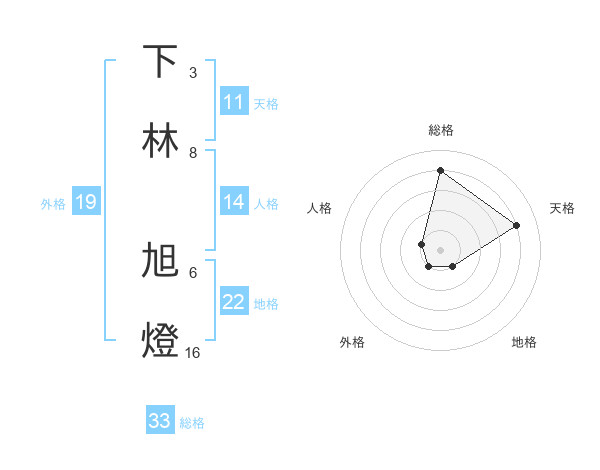 下林 旭燈さんの総格は33画の4点!