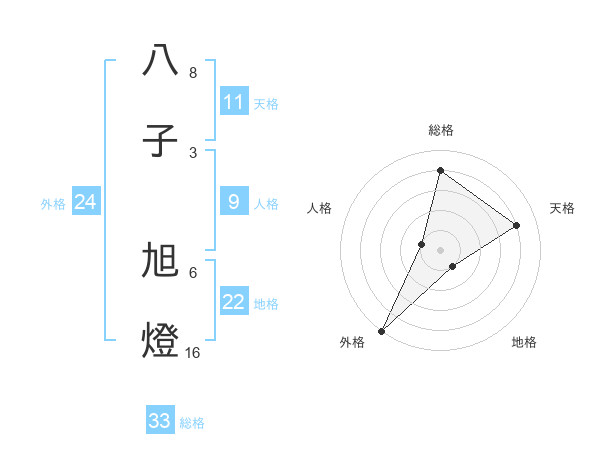 八子 旭燈さんの総格は33画の4点!