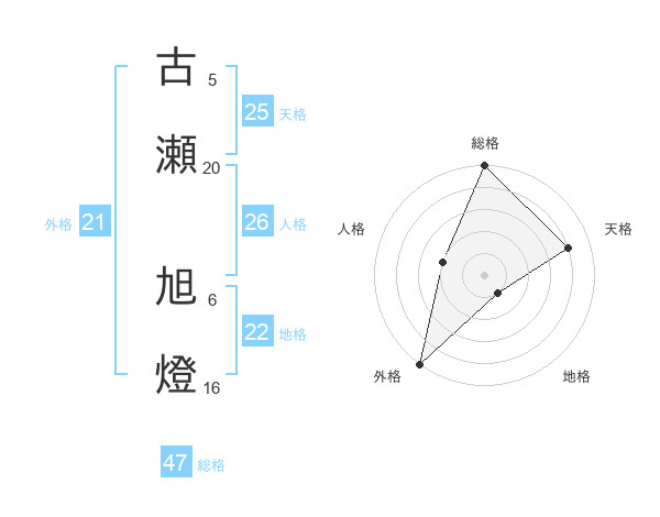 古瀬 旭燈さんを姓名の画数から五運を鑑定