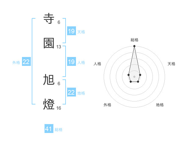 寺園 旭燈さんの総格は41画の5点!
