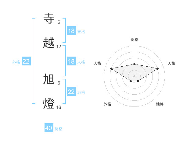 寺越 旭燈さんの天格は18画の4点!