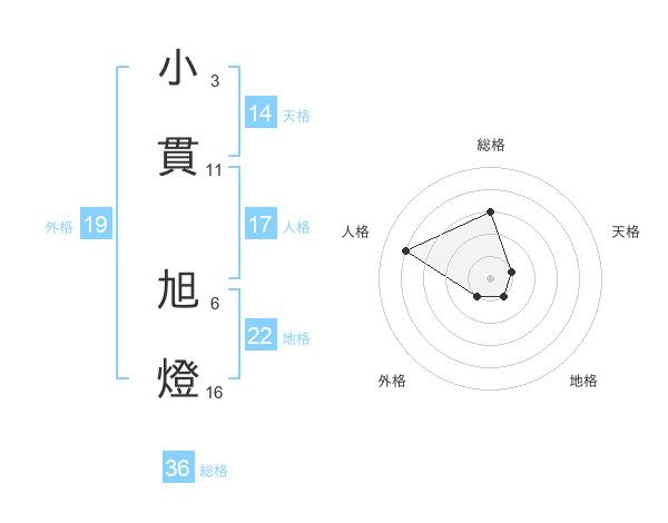 小貫 旭燈さんの地格は22画の1点!