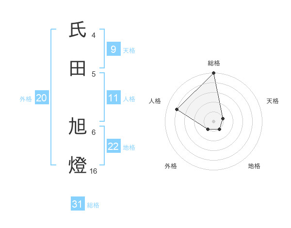 氏田 旭燈さんを姓名の画数から五運を鑑定