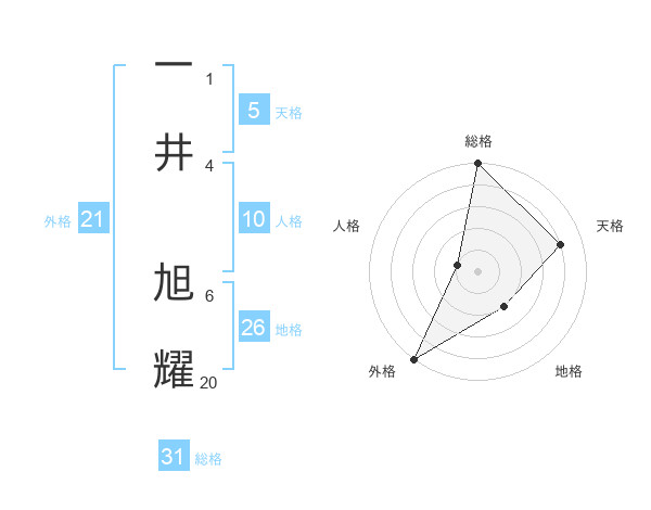 一井 旭耀さんの総格は31画の5点!
