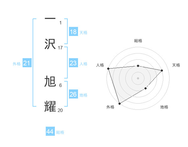 一沢 旭耀さんを姓名の画数から五運を鑑定