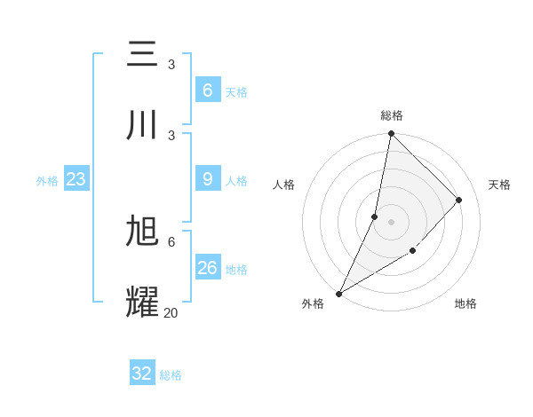 三川 旭耀さんを姓名の画数から五運を鑑定