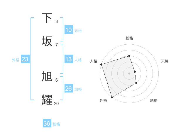 下坂 旭耀さんの総格は36画の3点!