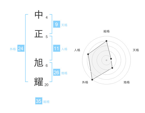 中正 旭耀さんを姓名の画数から五運を鑑定
