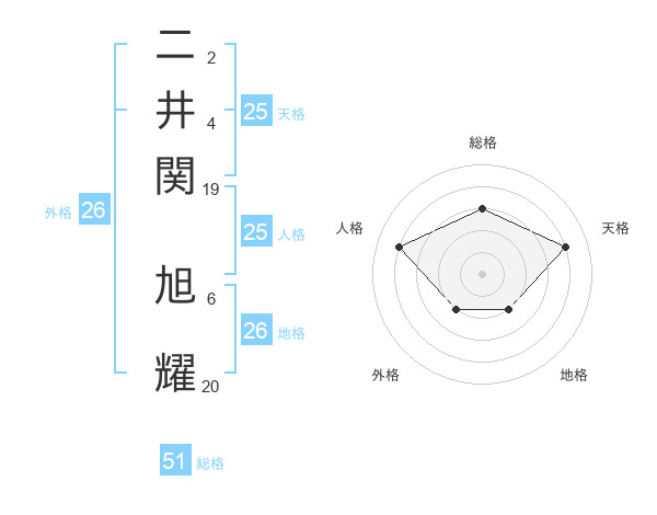 二井関 旭耀さんの総格は51画の3点!