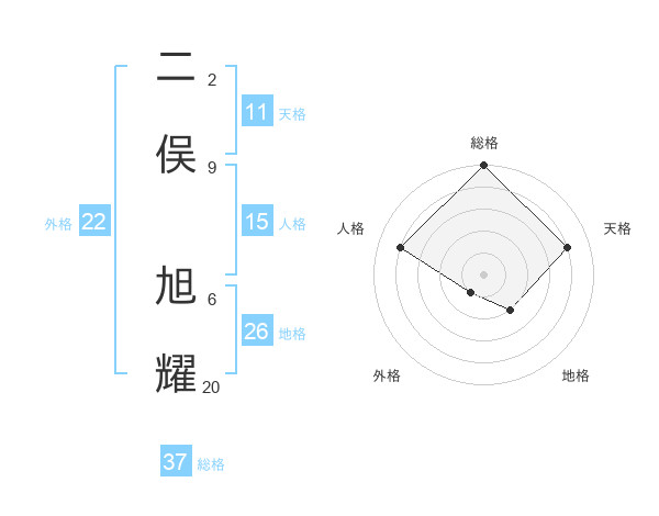 二俣 旭耀さんの外格は22画の1点!