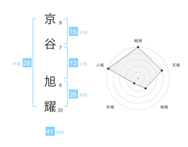 京谷 旭耀さんの地格は26画の2点!