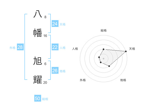 八幡 旭耀さんを姓名の画数から五運を鑑定