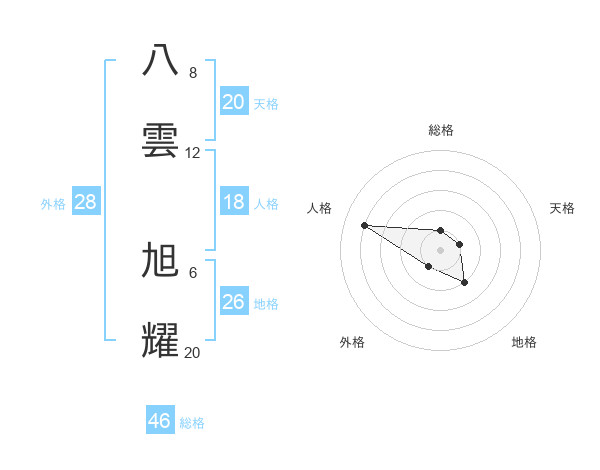 八雲 旭耀さんの天格は20画の1点!