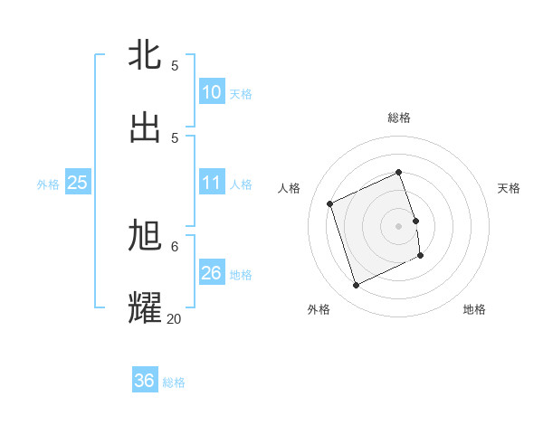 北出 旭耀さんの地格は26画の2点!