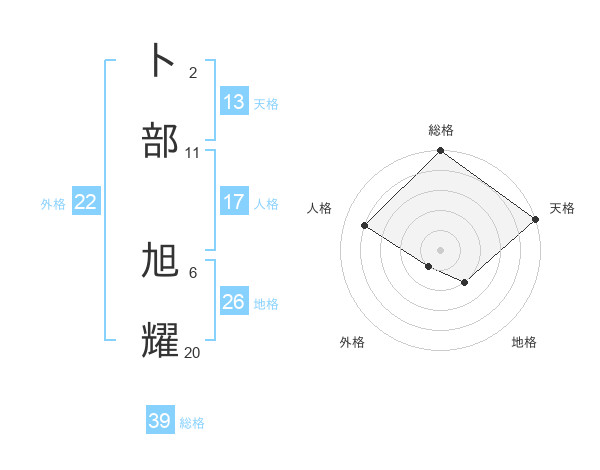 卜部 旭耀さんの総格は39画の5点!
