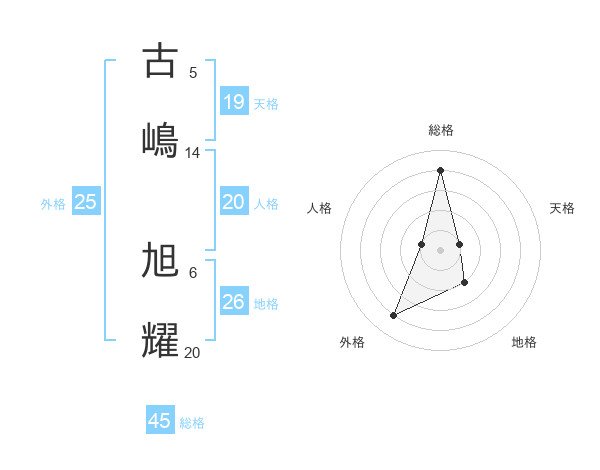 古嶋 旭耀さんを姓名の画数から五運を鑑定