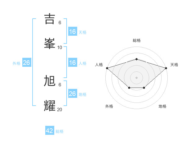 吉峯 旭耀さんの外格は26画の2点!
