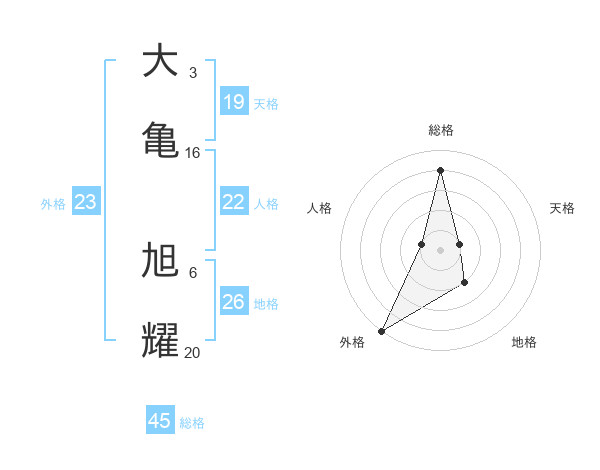 大亀 旭耀さんを姓名の画数から五運を鑑定