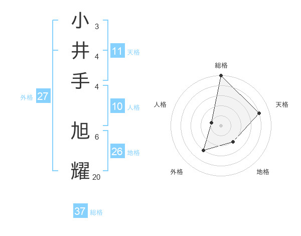 小井手 旭耀さんの総格は37画の5点!