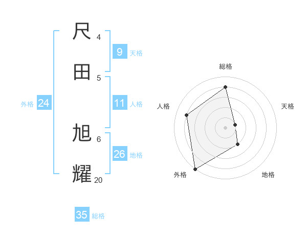 尺田 旭耀さんの総格は35画の4点!